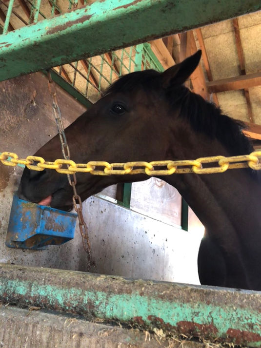広島大学馬術部では珍しい外国(フランス)生まれのお馬さん。21歳。フランスで育った生粋のパリジャンだと思いきや,顔でか唇シワシワ白目剥きがちのおじいちゃんで,あまりフランスの風は感じ取れません(笑)。その容貌から複数の部員は不細工だ,ブステラだと言ってますが,頑張り屋さんで親しみやすいところは可愛げがあるのです。可愛げがあるのに,お食事マナーが悪く食べたものをくちゃくちゃとこぼします。。。(笑)また,ステラもキナイと同じく少数の部員から重い愛を受けているのですが,当のステラはその愛に気づく素振りはありません。(笑)
